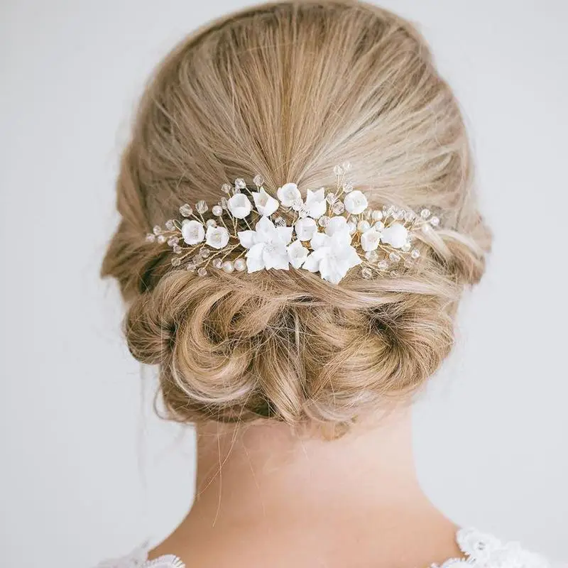 Заколки для волос с белыми фарфоровыми цветами, шпильки для волос в вечернем стиле, свадебные аксессуары для невесты