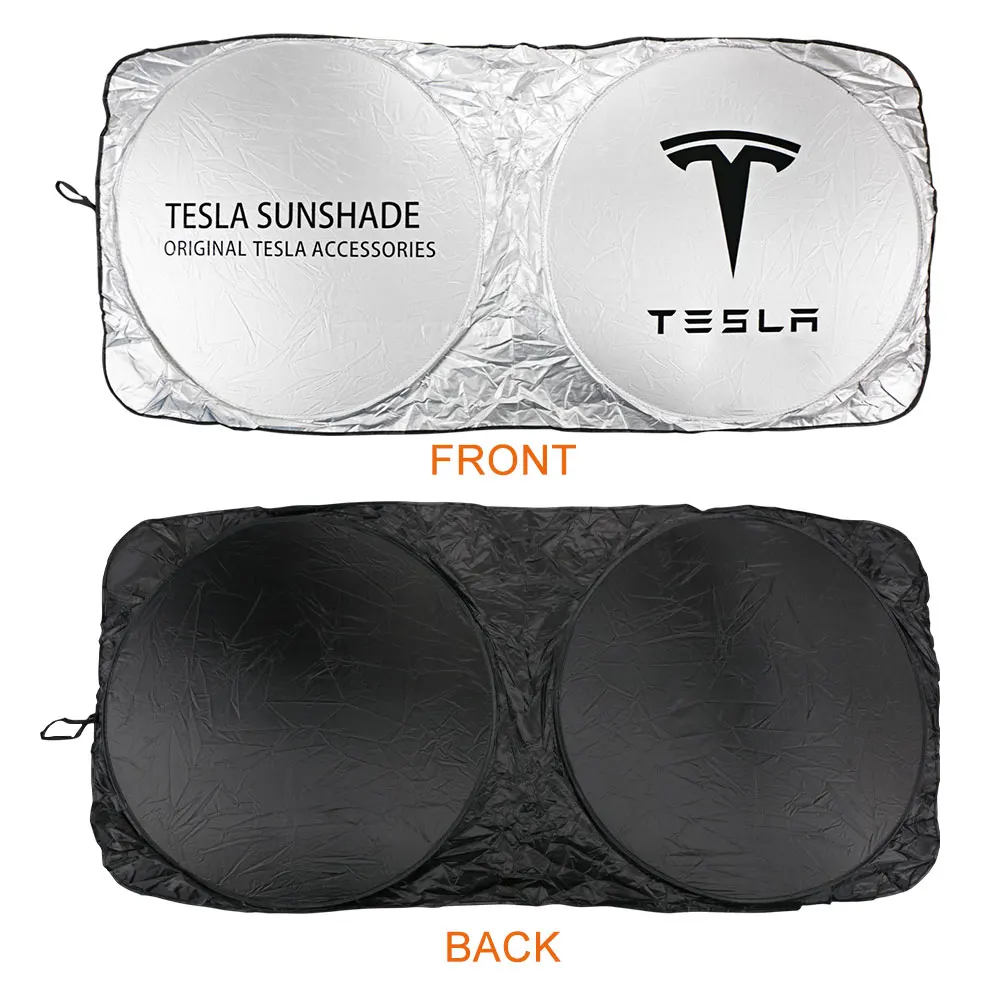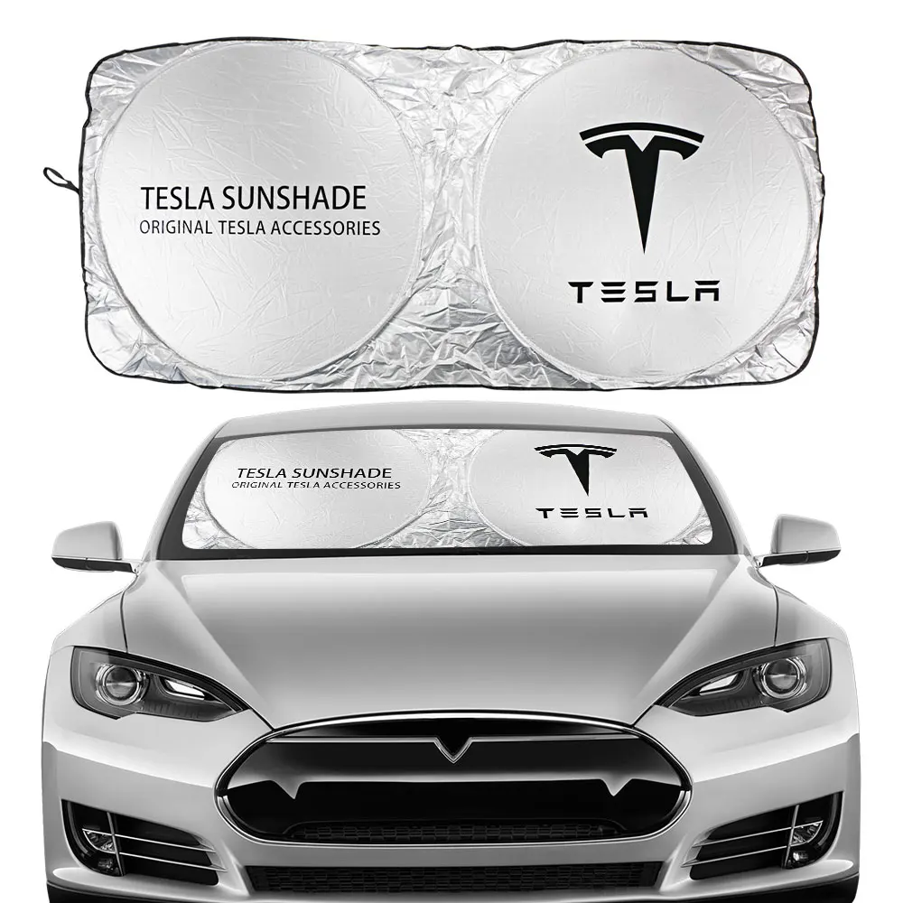 Солнцезащитные очки на лобовое стекло с логотипом автомобиля, отражающие УФ-излучение, охлаждающие козырьки, солнцезащитные козырьки на переднее окно для Tesla Model S, Model 3 X S, Y, P100D