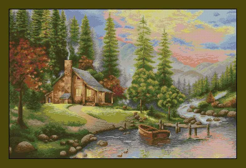 Лесная хижина мост пружина вода высшее качество вышивка рукоделие 1...