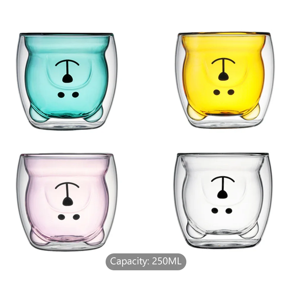 Двойная стеклянная чашка с милым медведем, котом, животным, двойная стенка, стеклянная кружка, термостойкая стеклянная кружка для молока, кофейная чашка, рождественский подарок