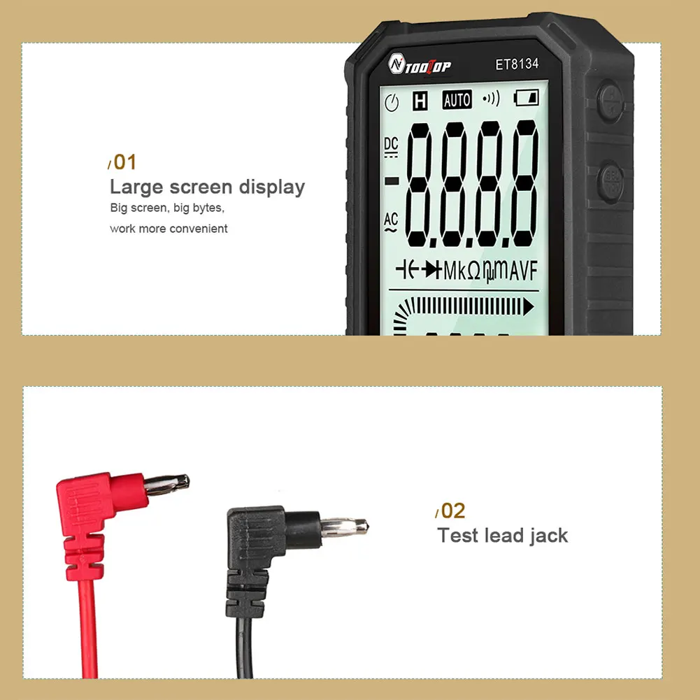 Цифровой мультиметр ET8134 NCV с ЖК-дисплеем и подсветкой, Автоматический диапазон, 6000 отсчетов, Вольтметр постоянного и переменного тока, амперметр, Омметр, тестер напряжения, измеритель емкости