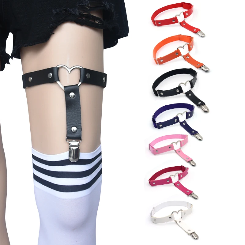 Пояс для чулок женский кожаный эластичный с кружевными носками и кольцом в форме сердца, плотно прилегающие лямки