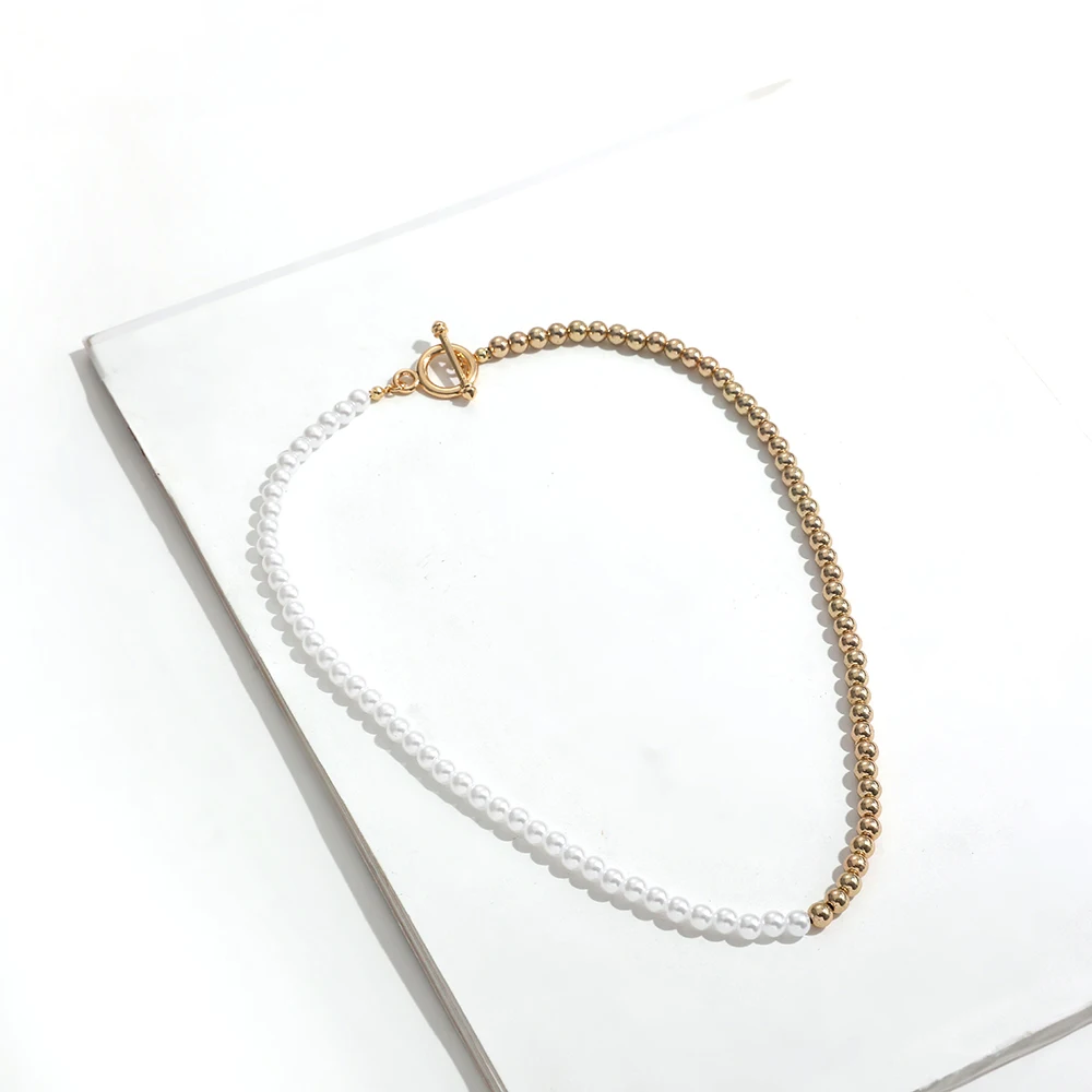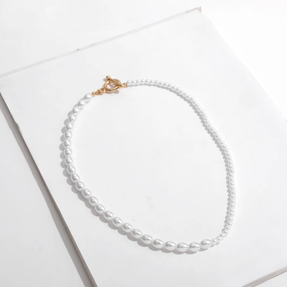Ожерелье-чокер женское с имитацией жемчуга, модное колье до ключиц с переключателем и застежкой-бусиной, свадебное ювелирное изделие