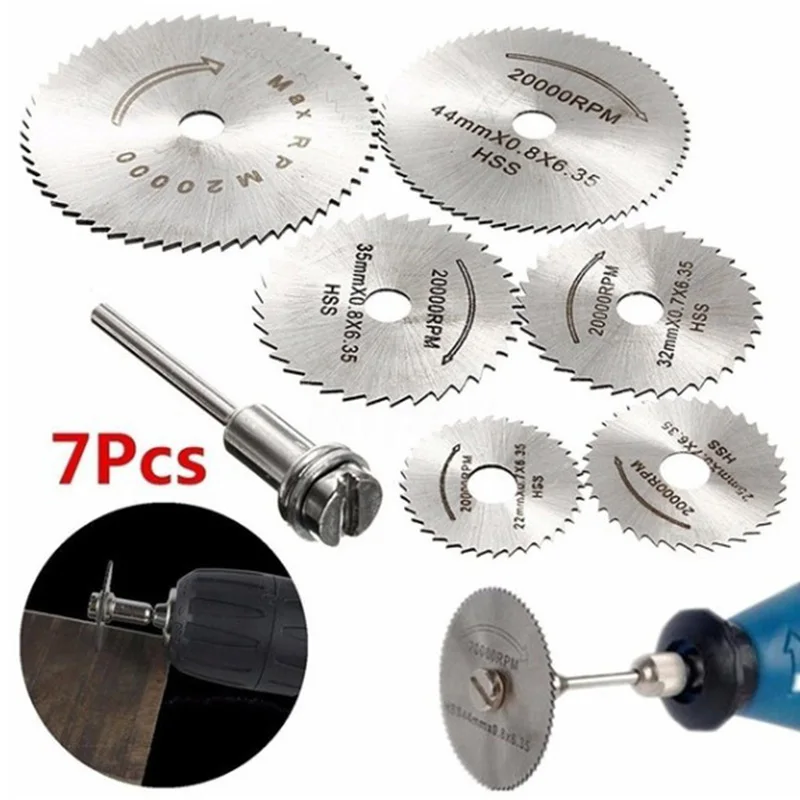 7 шт., металлические отрезные Дисковые Диски, дисковые буровые лопасти и оправки, дисковая резка HSS, мини Дисковая пила, набор вращающихся инструментов для Dremel