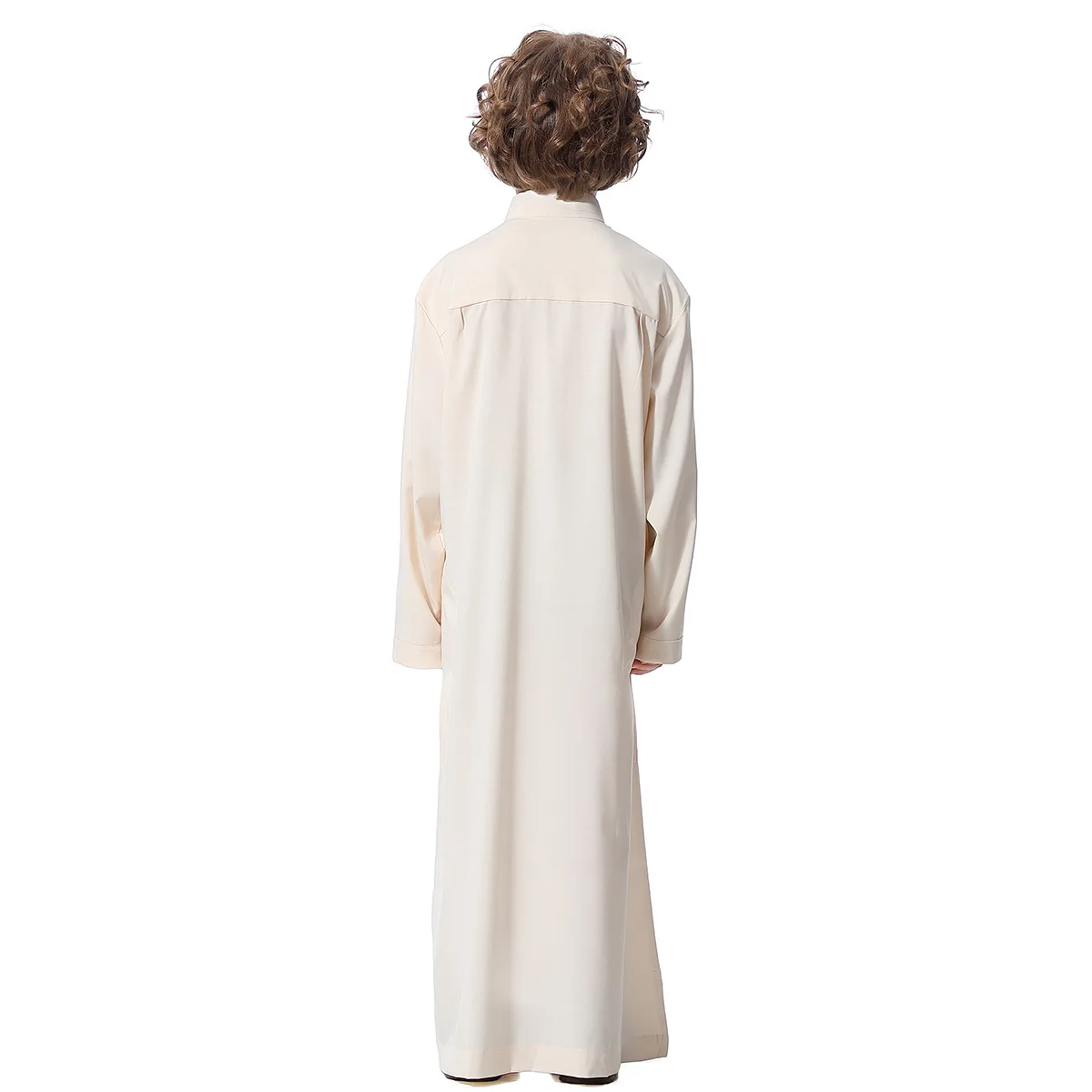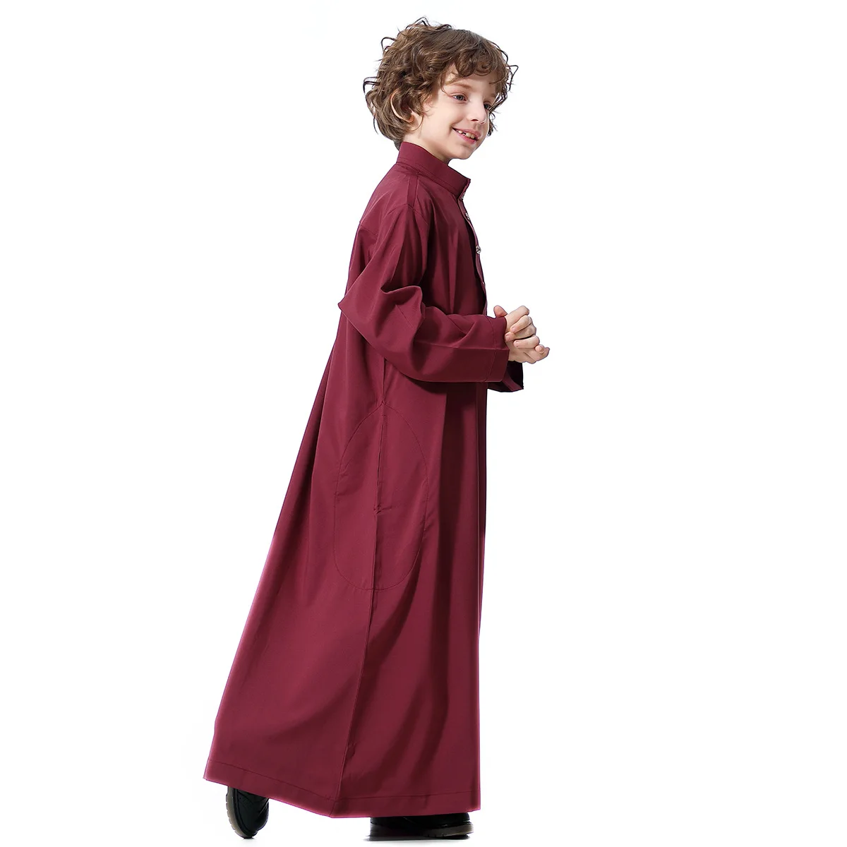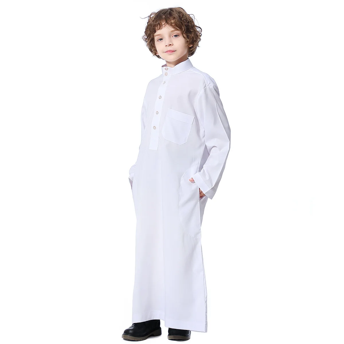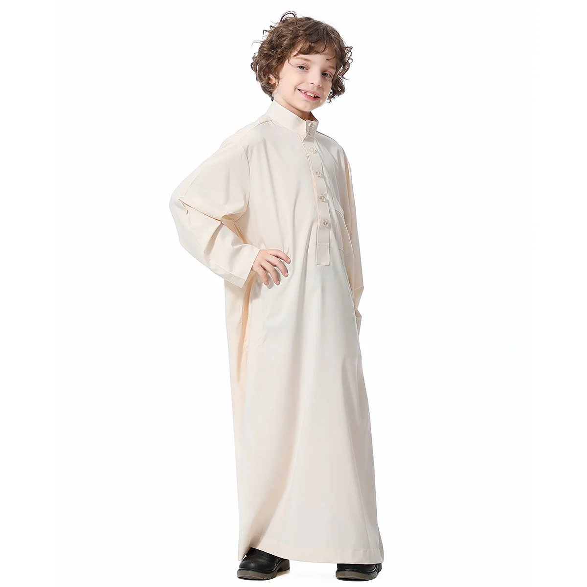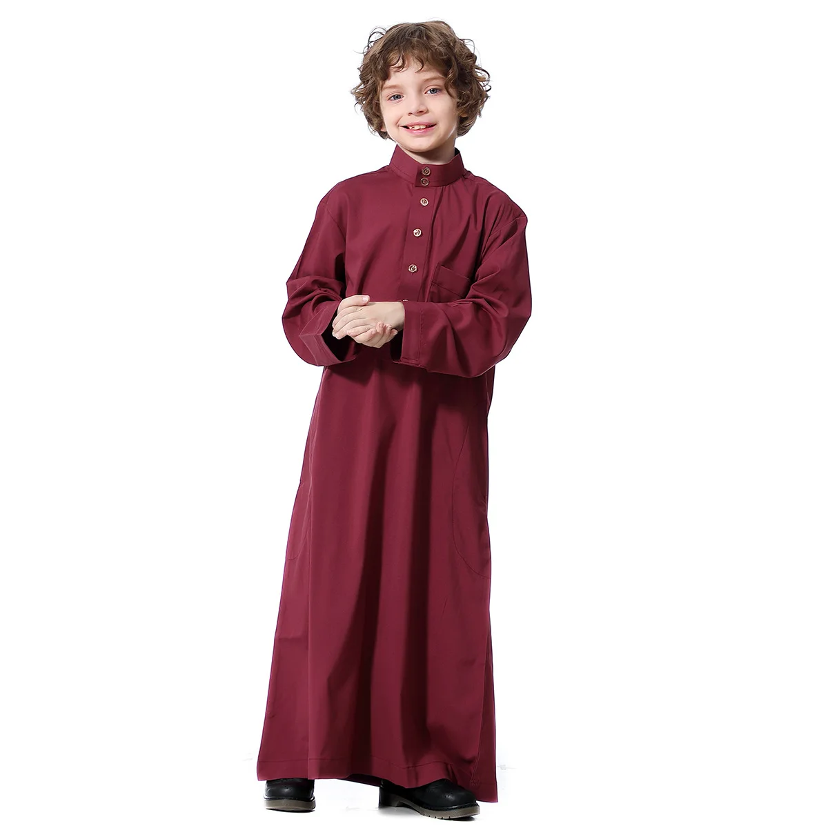 Однотонная мусульманская абайя для подростков Jubba Thobe Ближний Восток арабское детское длинное платье для мальчиков Исламский длинный халат Caftan с пуговицами