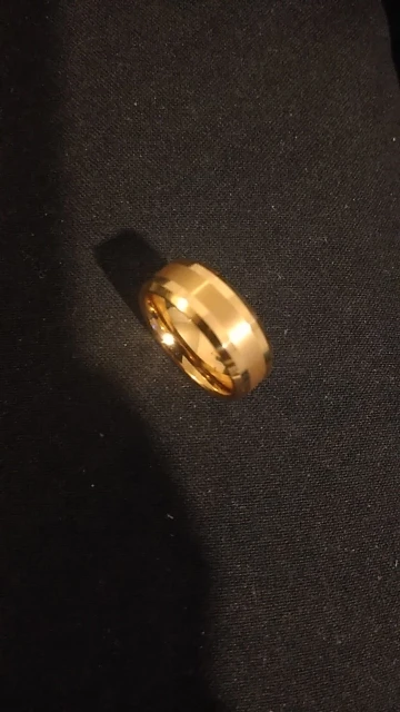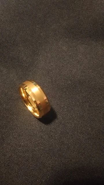Цвет и качество полировки действительно высокие, выглядит как золото. Он немного толще, чем я думал, но он имеет такие гладкие формы, что вы не чувствуете толщину, это удобно. Надеюсь, что это качество, так как вольфрамовый Материал достаточно хорош, чтобы сопротивляться со временем.