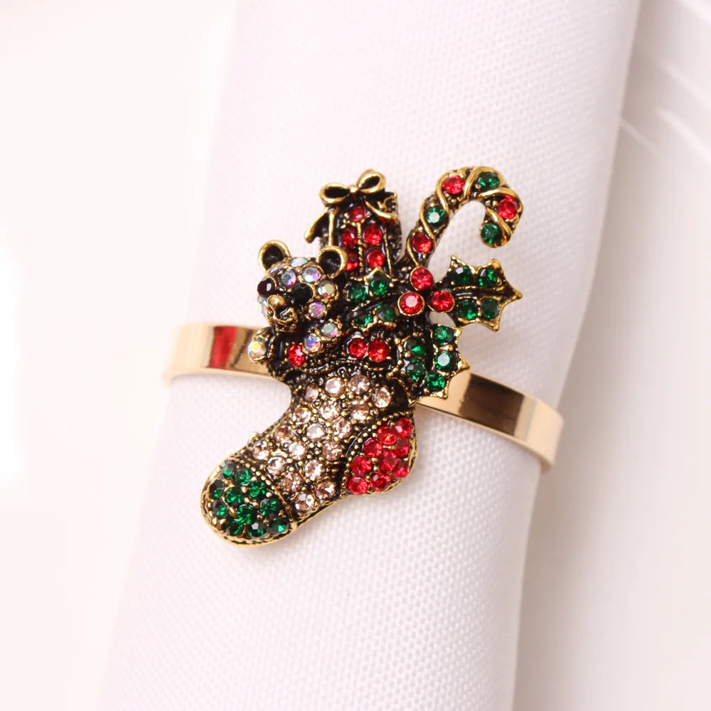 Новое кольцо для салфеток в виде рождественской елки, бант, цветочный венок, кольцо для ротовой комнаты, набор для стола, Рождественская застежка для салфеток, держатель для салфеток