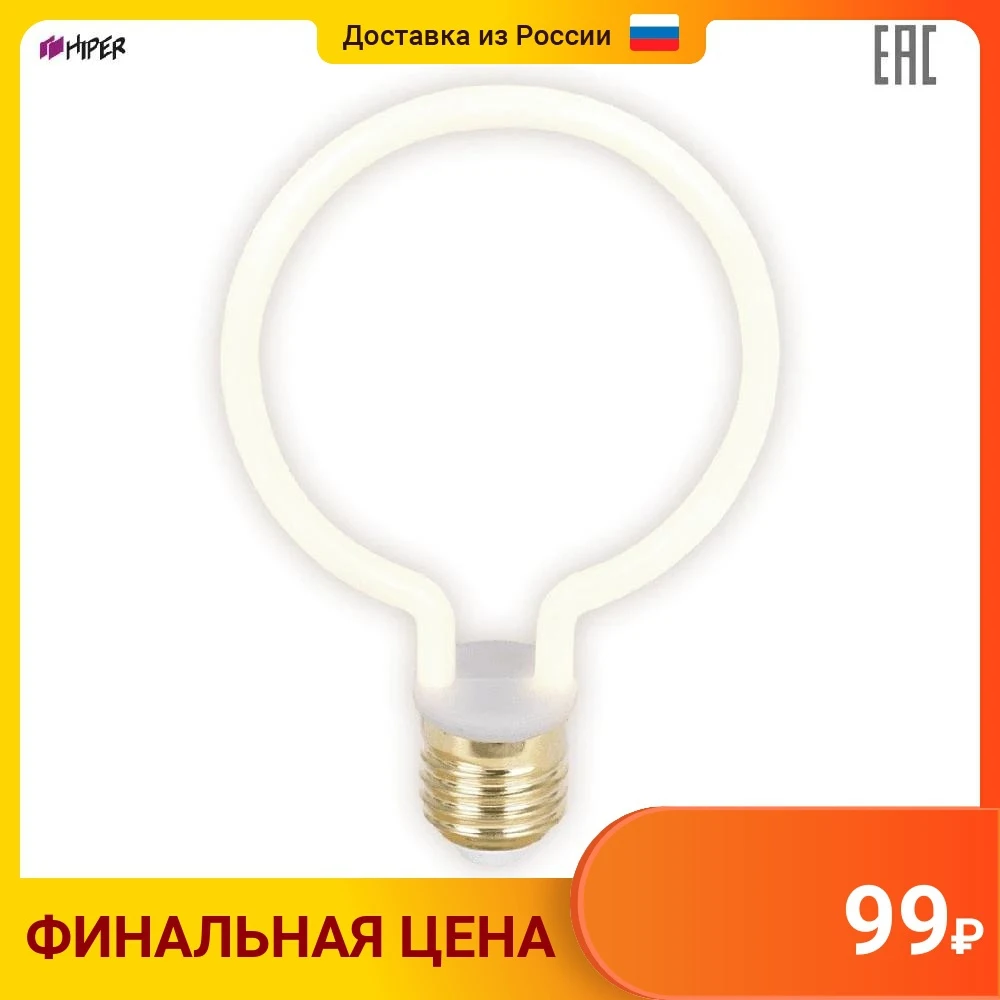 Лампа светодиодная Hiper THOMSON LED FILAMENT DECO G95 4W 400Lm E27 2700K Frosted