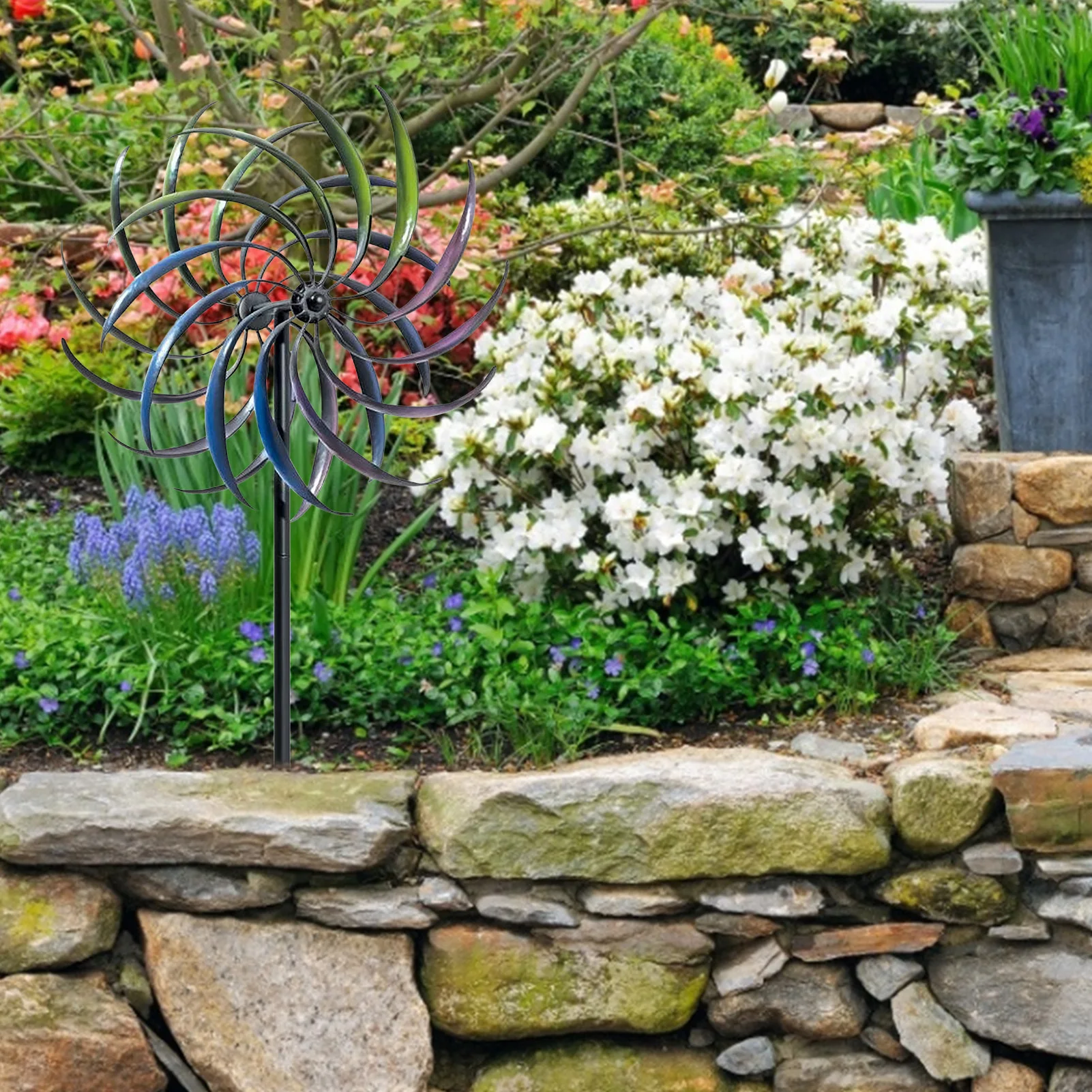 Двухслойная вращающаяся ветряная мельница радужного цвета, кованый железный Спиннер, уличная садовая декоративная стойка для газона