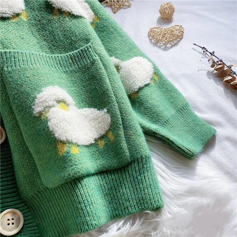 Вязаный кардиган с овечками, корейский новый милый свитер с мультип...