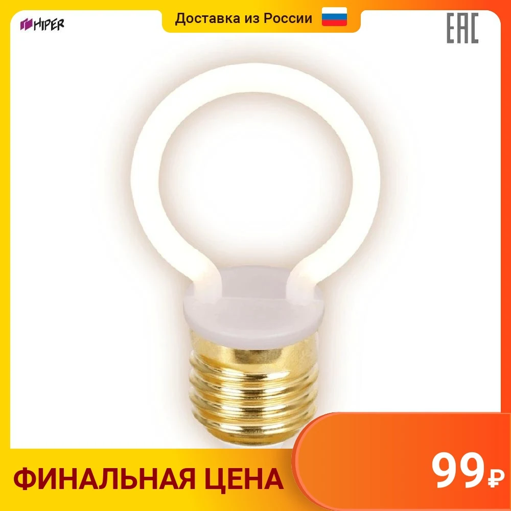 Лампа светодиодная Hiper THOMSON LED FILAMENT DECO GLOBE 4W 400Lm E27 2700K Frosted