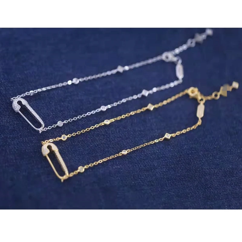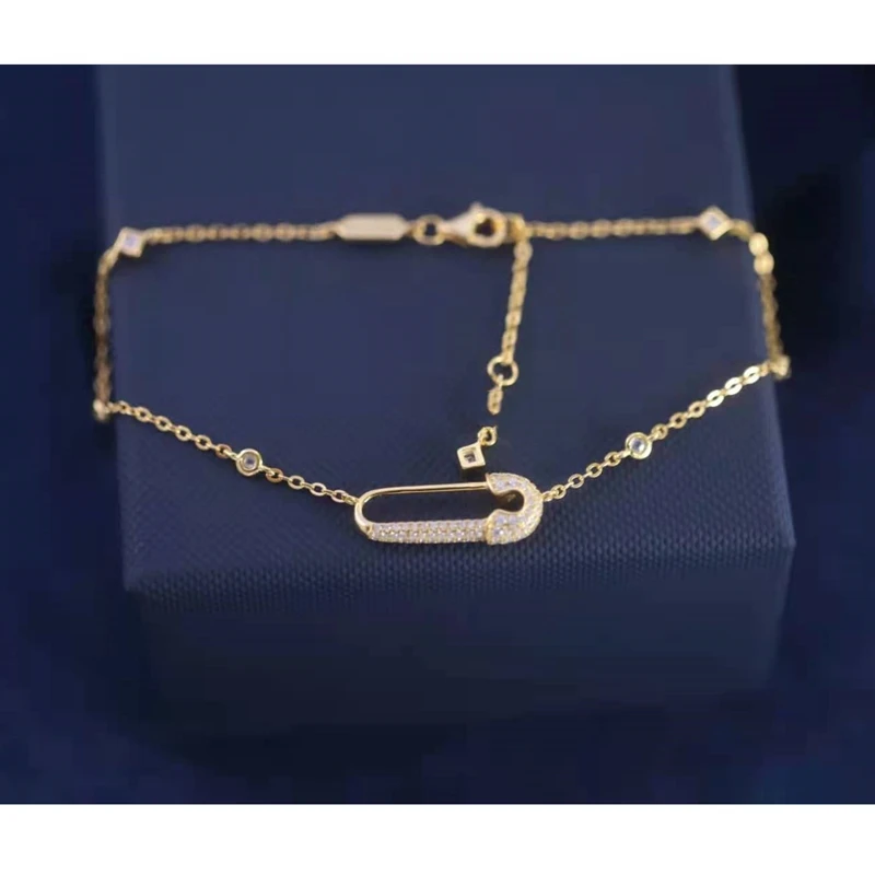 Безопасный анклет, браслет на лодыжку с искусственным серебряным кубическим цирконием, серебряная цепочка на лодыжку для женщин, Геометрическая булавка, Золотая одинаковая зеркальная