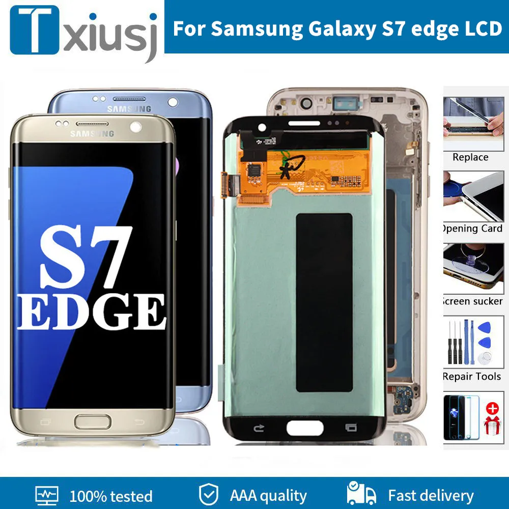 ЖК-дисплей SUPER AMOLED 5,5 дюйма с ожоговым тенем и рамкой для SAMSUNG Galaxy S7 edge G935 G935F, дисплей с сенсорным экраном и дигитайзером в сборе