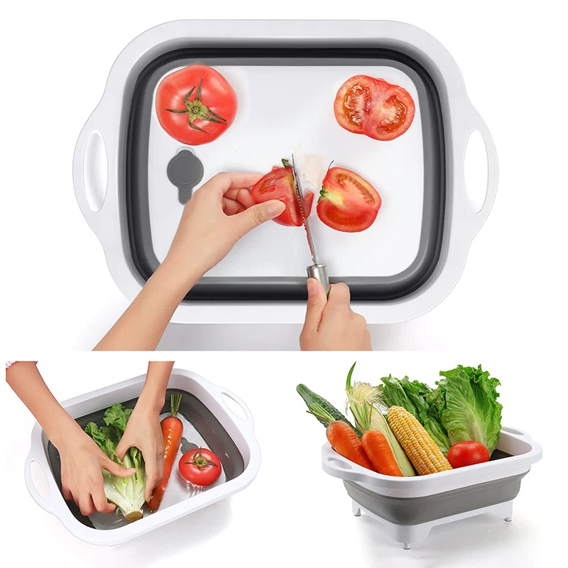 Особенности: Прочный Материал: Изготовлен из высококачественного полипропилена, этот складной овощной таз очень прочный и износостойкий. Не легко деформируется и ломается. Складной: компактный складной дизайн, они не занимают много необходимого места в кухонных шкафах. Многофункциональность: его можно использовать в качестве сливной корзины, и вы можете использовать его для мытья и слива фруктов и свежих овощей. Когда он складывается в разделочную доску, вы можете использовать его для резки овощей, резки фруктов и приготовления вкусной пищи. Нескользящая конструкция: нескользящая конструкция в нижней части может надежно и надежно удерживать эту корзину, благодаря проецируемым эргономичным ручкам ее легко захватывать. Широкое использование: Эта портативная разделочная доска может быть применена к кухне или ресторану и может быть вывезена для использования на открытом воздухе для кемпинга или пикника.