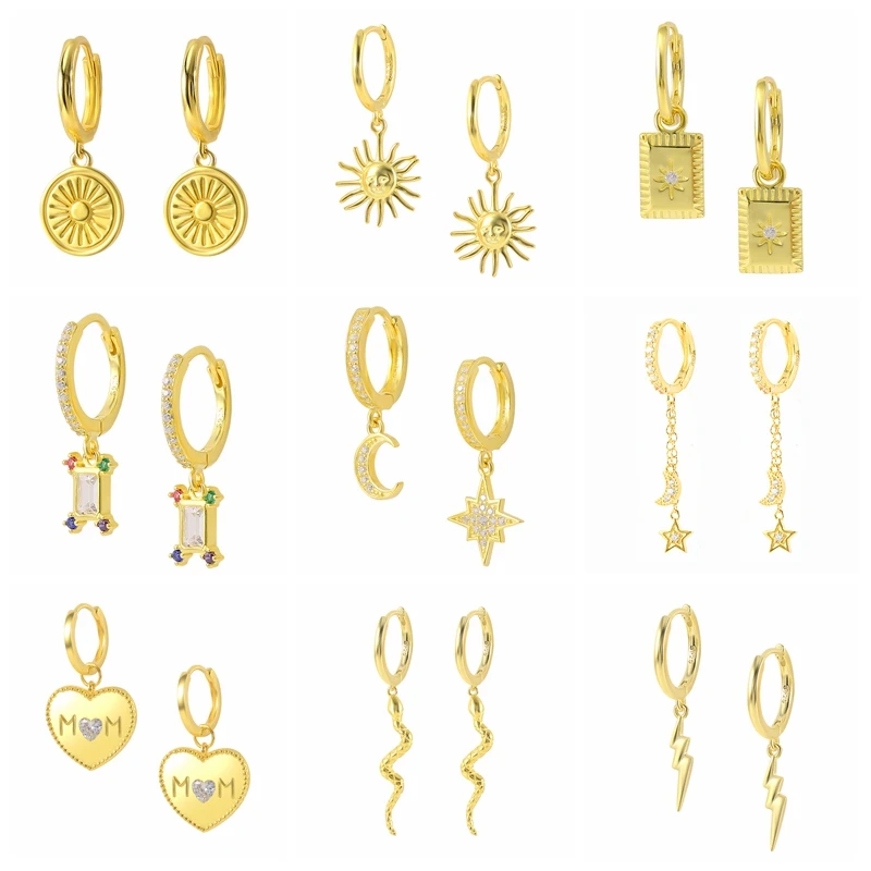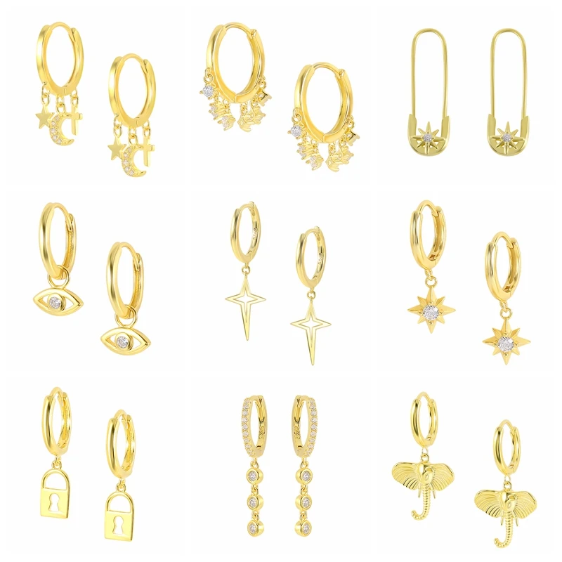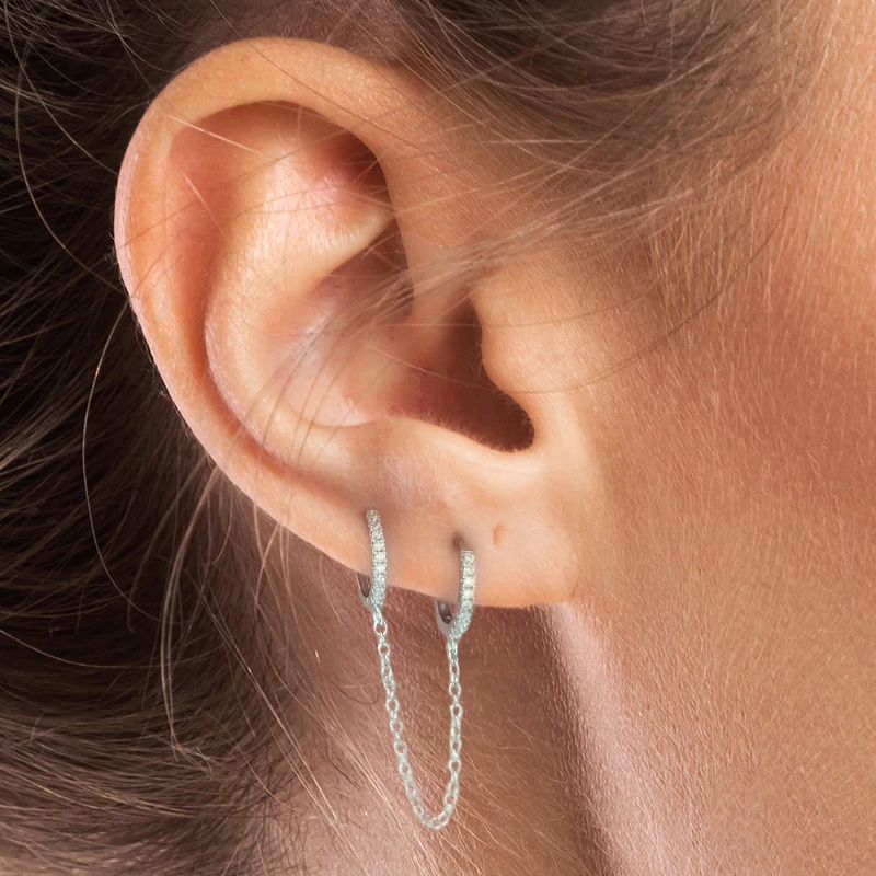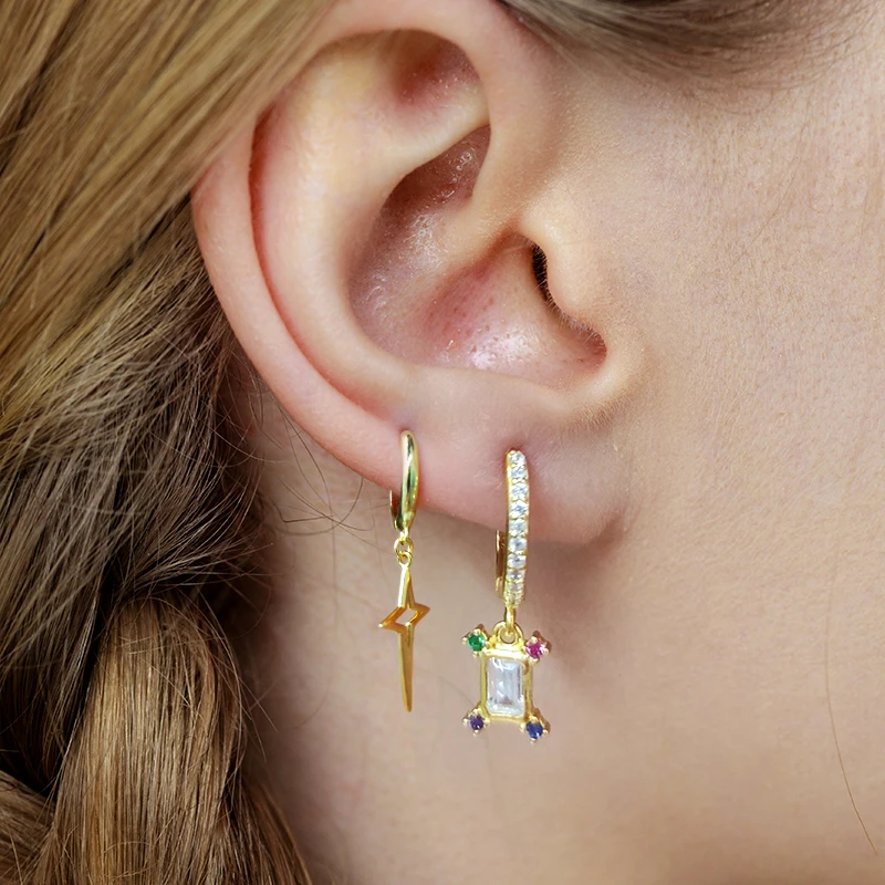 Серьги-кольца женские из серебра 925 пробы с разноцветными кристаллами