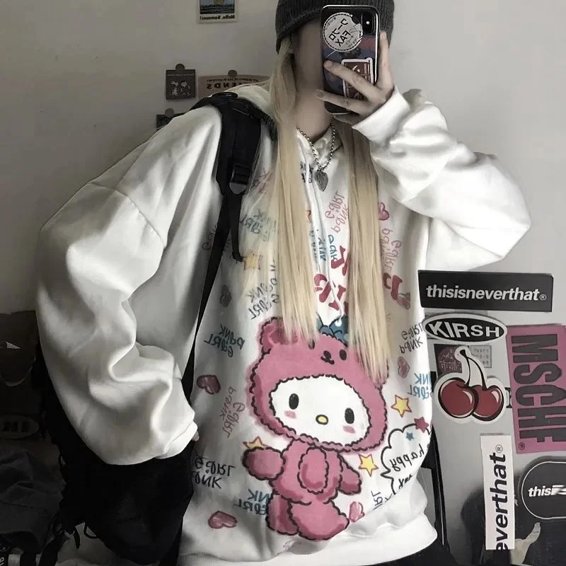 Толстовка Женская с японским мультяшным принтом кролика, пуловер в ...