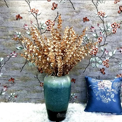 Искусственное растение, золотые ветки 50 см, листья эвкалипта, укра...