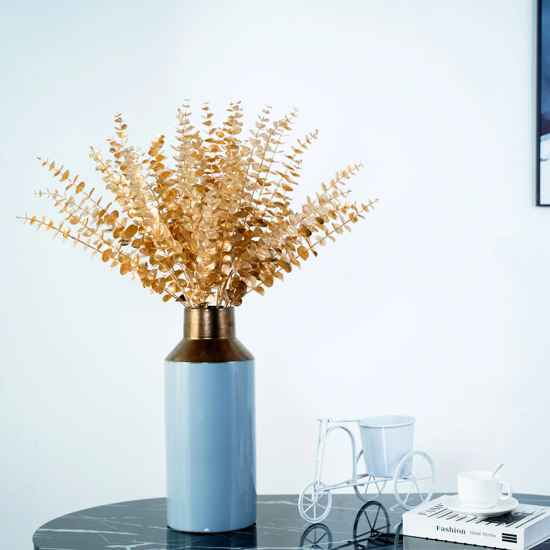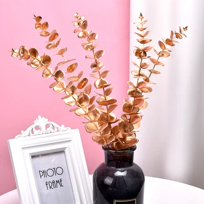 Искусственные растения 50 см в скандинавском стиле, листья эвкалипта золотого цвета, свадебный реквизит, цветы для украшения дома сделай сам