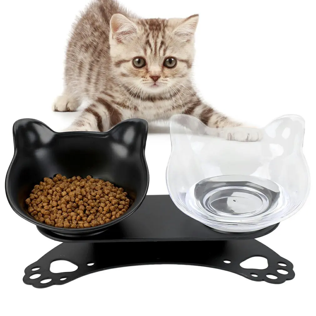 Нескользящие двойные наклонные миски для кошачьего корма, приподнятая миска для кошачьего корма, двойные пластиковые миски для домашних животных с наклонным углом 15 и нескользящей резиновой основой