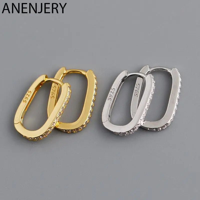 Женские и мужские серьги-кольца ANENJERY, серьги-кольца из стерлингового серебра 925 пробы с микро инкрустированным цирконием, простые круглые серьги, персонализированные ювелирные изделия