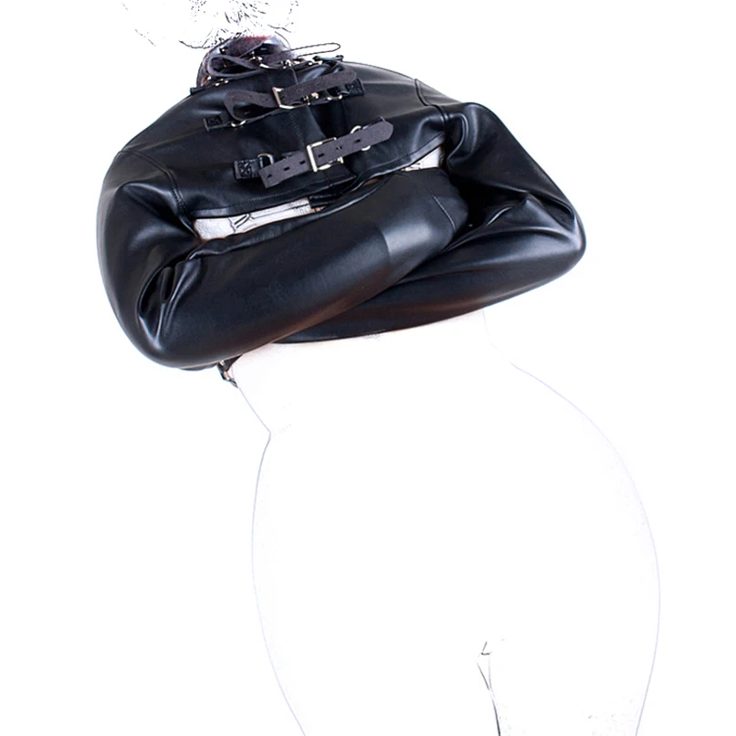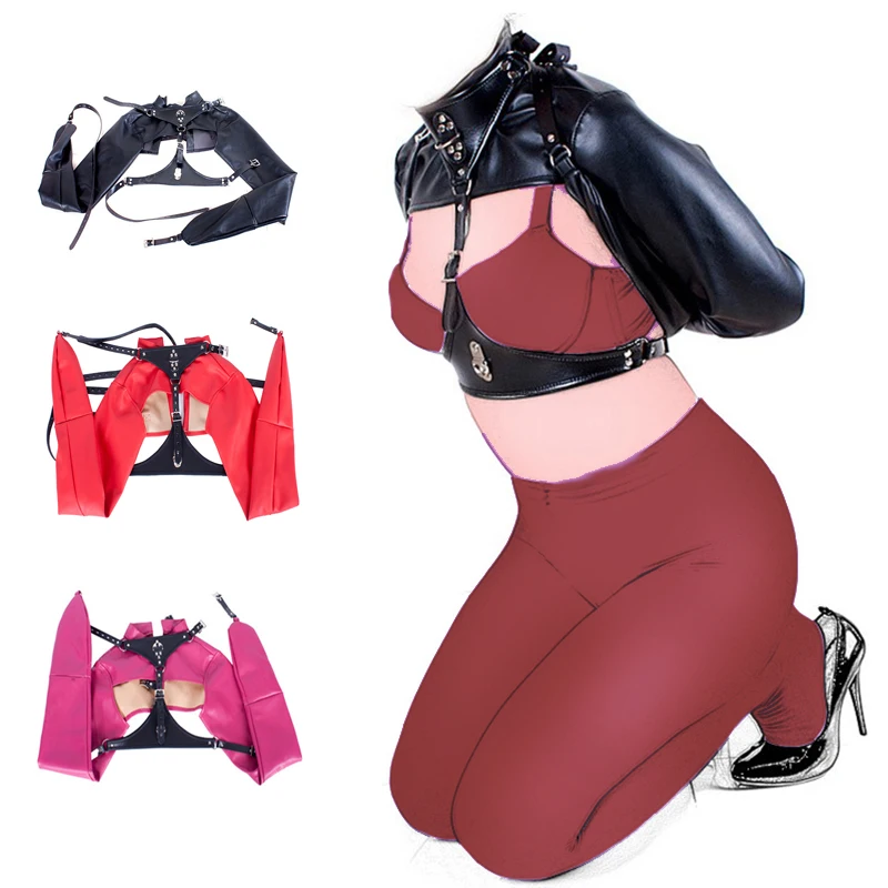 БДСМ связывание сдержанность искусственная кожа Straitjacket Топ, Женский Открытый Кубок куртка прямое тело связующего жгут ролевые игры эротический костюм