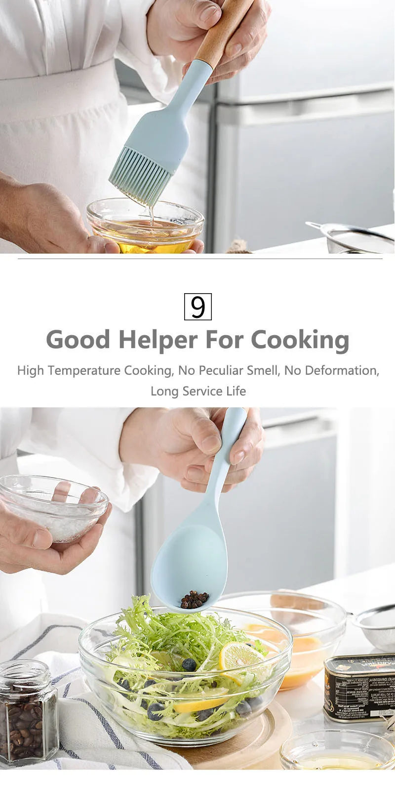 Кухонные приборы Инструмент, силиконовая посуда с деревянной многофункциональной ручкой, антипригарная лопатка, ковш, лопатка для взбивания яиц