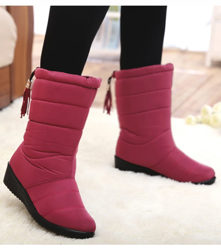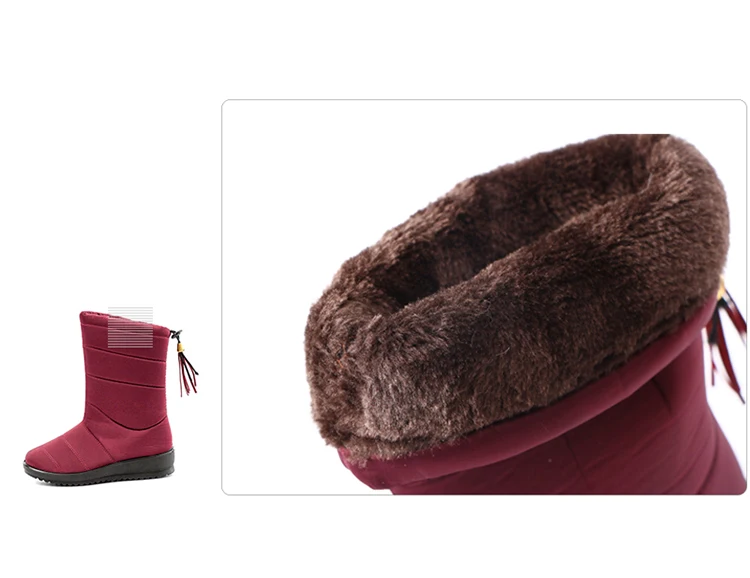 Модные женские ботинки зимние ботинки с бахромой женские зимние ботинки на пуху женские ботинки средней длины до голени Mujer, теплая зимняя обувь, большой размер 44