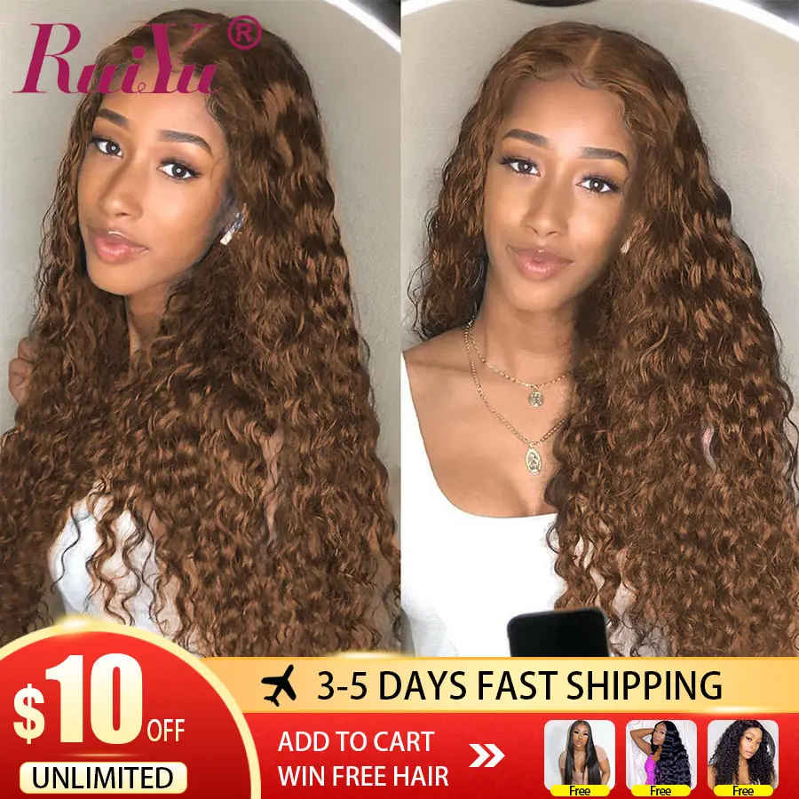 Коричневый парик с глубоким волнистым фронтальным париком, свободная глубокая волна, кудрявый фронтальный Парик HD, прозрачный Т-образный парик, бразильские человеческие волосы, кружевные фронтальные парики