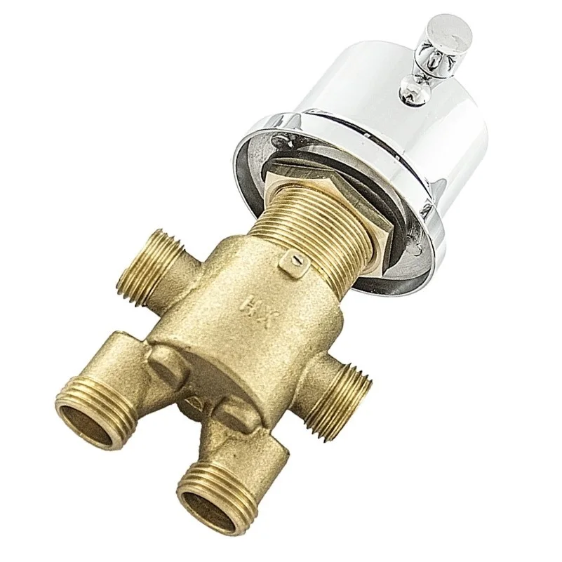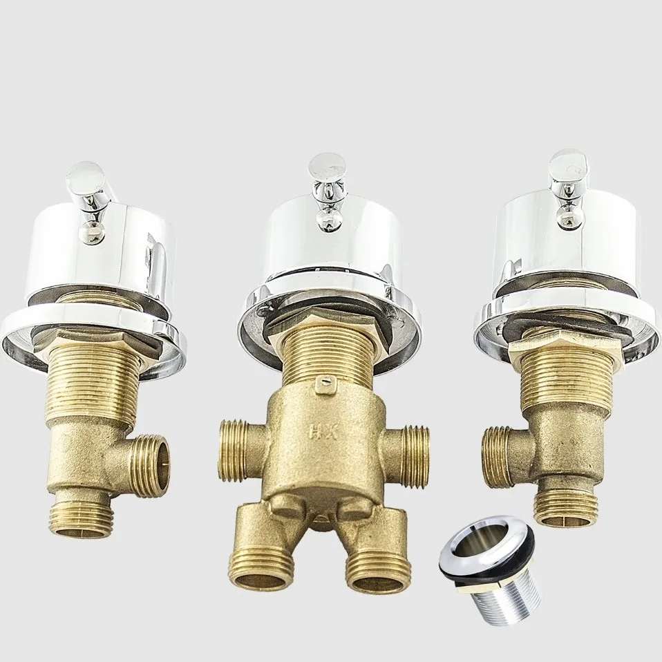 Смеситель на борт ванны из латуни (два крана на холодную и горячюю воду, переключатель ванна-душ, фитинг для леки)