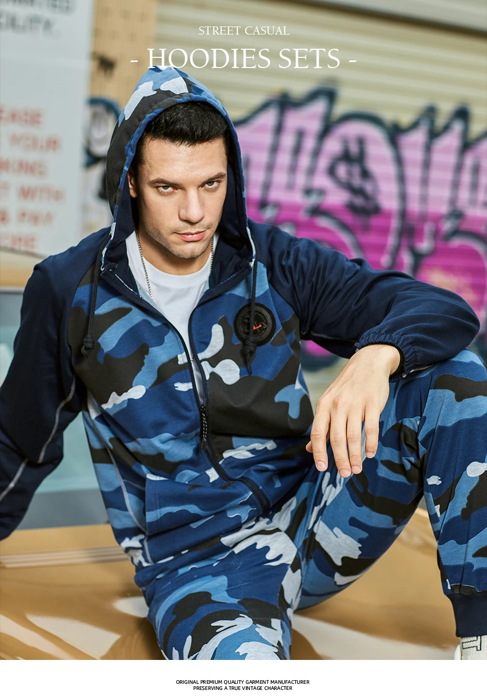 Мужской спортивный костюм из 2 предметов, повседневная камуфляжная куртка на молнии и брюки, осень 2022