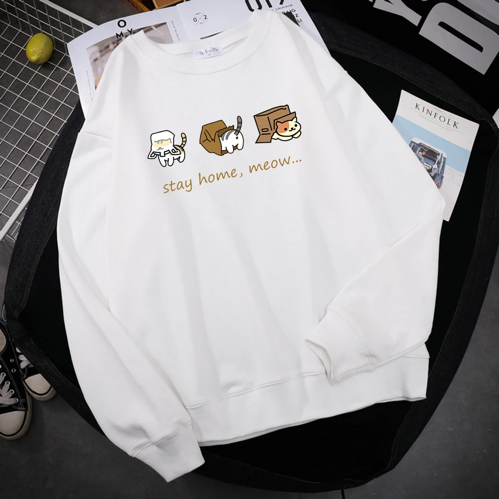 Толстовка мужская оверсайз с капюшоном, милый Повседневный свитшот с принтом три мини-кота, надписью Stay Home и надписью Meow, модный топ в стиле хип-хоп, на осень