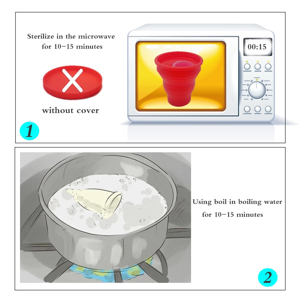 Нет аллергических реакций, не приводит к плесени и инфекциям мочевых путей, может быть применен ко всем женщинам, но использование Девы должно быть тщательно.Менструальные чашки должны быть стерилизованы перед использованием, можно выбрать специальный Стерилизатор Дезинфекции, также может быть в кипящей воде дезинфекции Емкость:Менструальная чашка размера S подходит для нормального протекания.Размер L менструальная чашка подходит для сильного потока.
