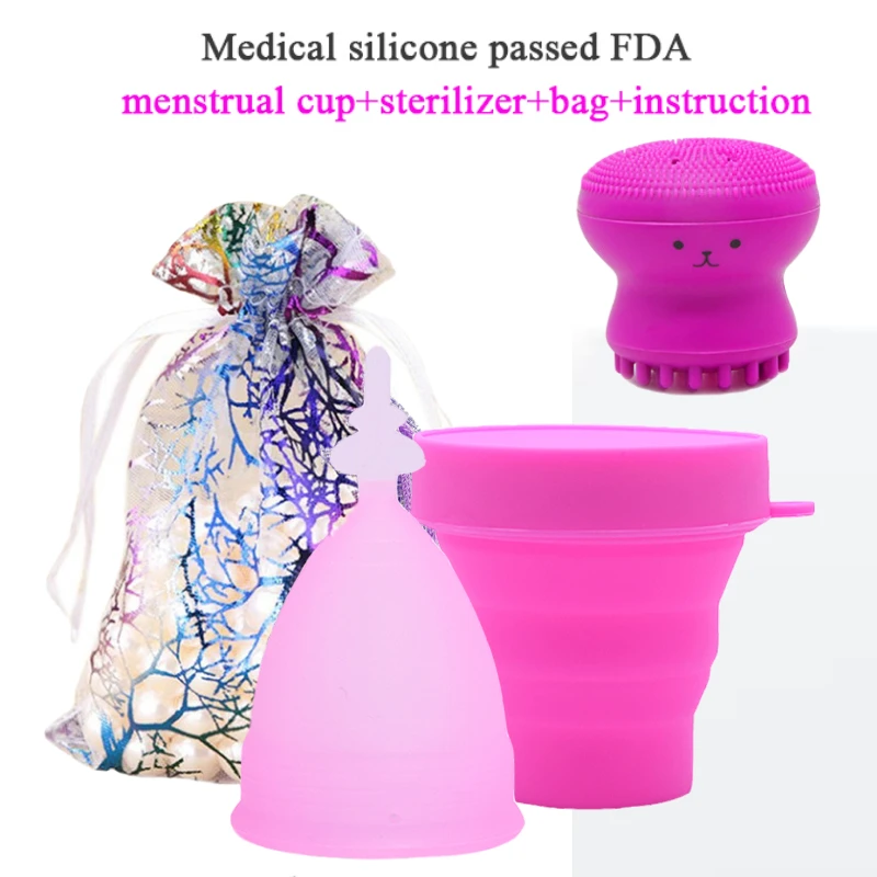 Медицинская силиконовая менструальная чашка Складная силиконовая чашка для чистки менструального периода чашка для женщин Менструальный коллектор и щетка для очистки лица