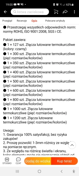 Термоусадочная муфта-это их ponoch 840 шт. Еще не lizylem. Всего 2 вида заклинаний. 5 видов рукавов горячего расплава, но это их достаточно, не знаю, liczylem Недостающие трикотажные изделия termokulczliwe черного цвета для цветных рукавов. Ниже фотография wzucam, сколько это должно быть no Но это обманка. Из-за того, что достаточно большого количества размещенных размеров. Для коробки с добавками не указаны только термоусадочные трикотажные изделия dawaj для мешков и pomieszane 2 вида. Компания zenujaca. Позвоните продавцу не мила. Не рекомендуется этот продавец.