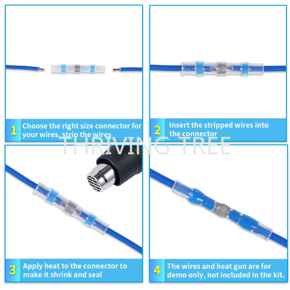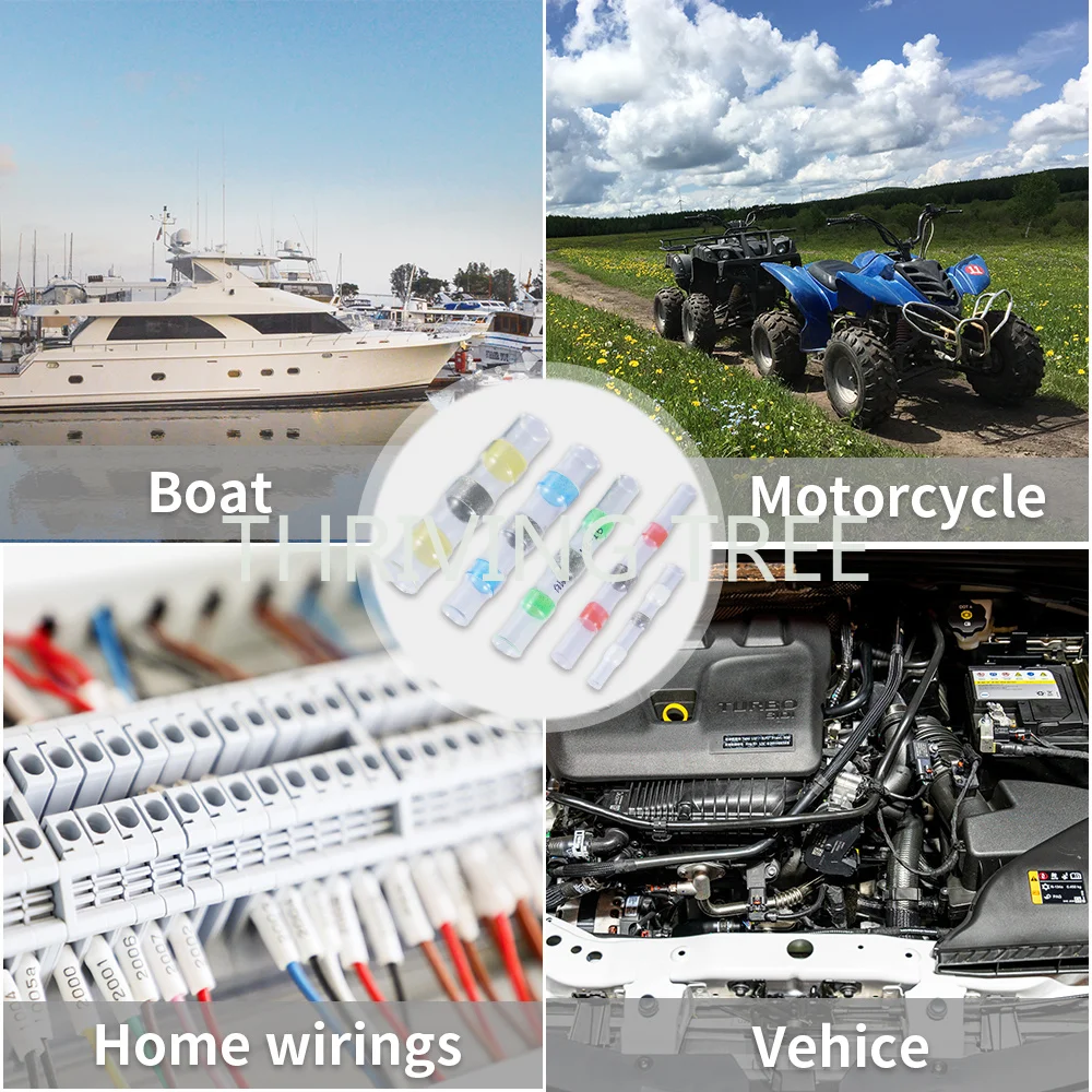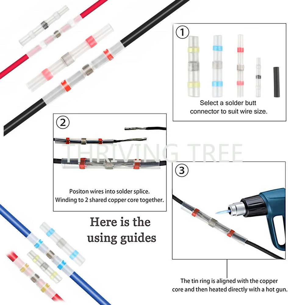Комплект соединителей для проводов с паяльным уплотнением, термоусадочные стыковые соединители, водонепроницаемые и изолированные клеммы для электрических проводов, 1200600300 шт.