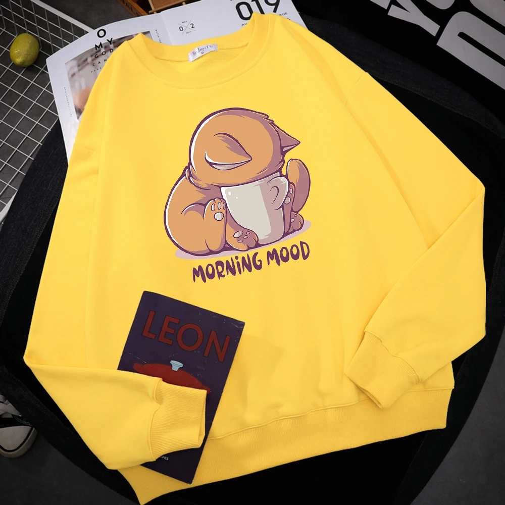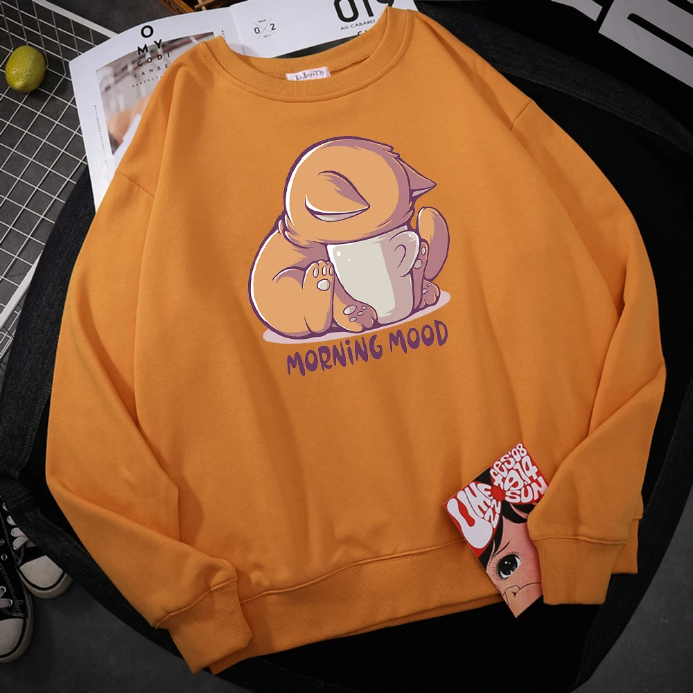 Толстовка с капюшоном для мужчин и женщин, свитшот с принтом милого кота в стиле хип-хоп, свободная худи, флисовая толстовка в стиле Харадзюку, уличная одежда с круглым вырезом, осень