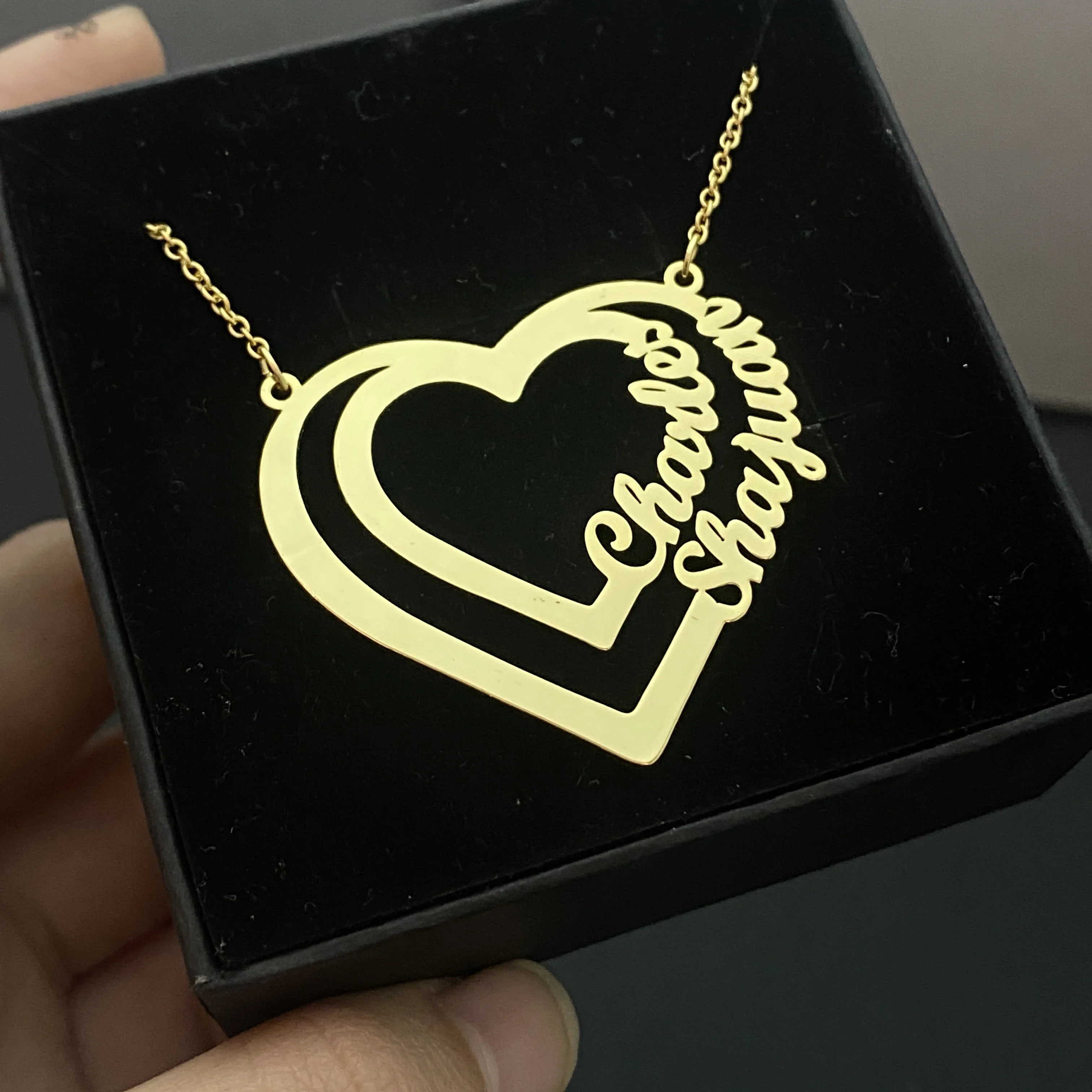 цепочки на шею necklace for women necklace for women Новое ожерелье с именем на заказ, персонализированное ожерелье с двойной подвеской в форме сердца с буквой для подруги, женское ювелирное изделие на заказ, подарок