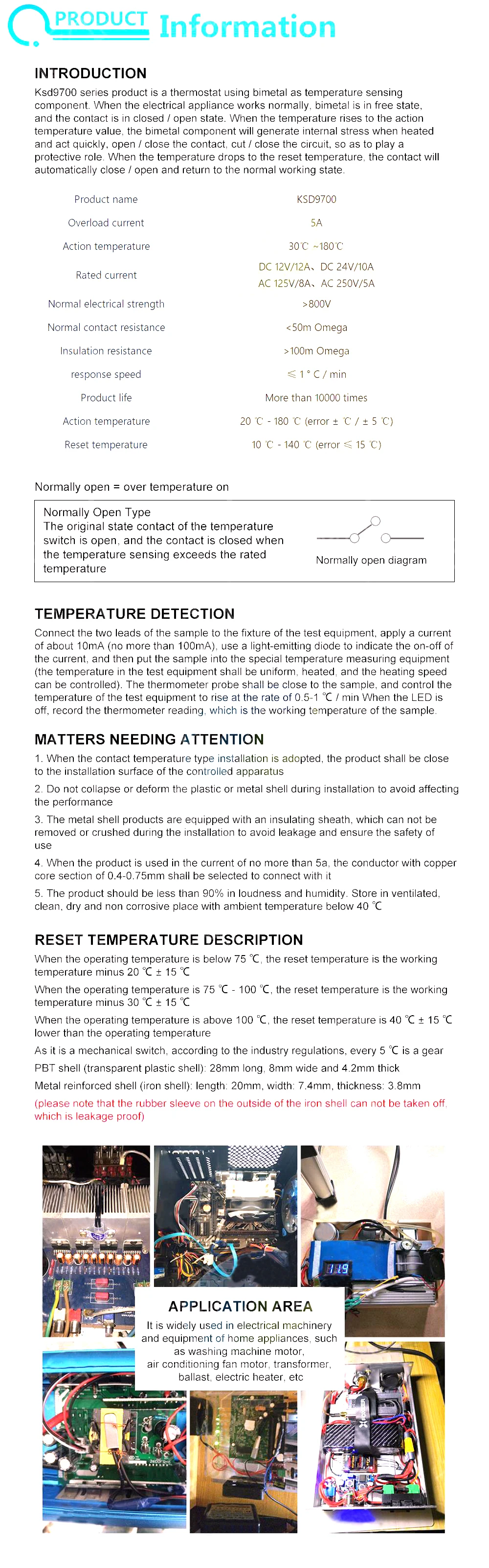 KSD9700 250 В 5 А пластиковыйбиметаллический дисковый Температурный выключатель NC термостат термопротектор 40 95 градусов по Цельсию нормальное закрытие