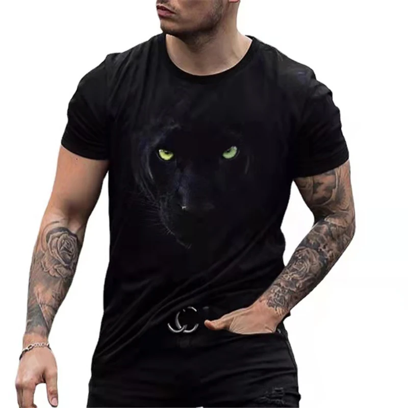 Футболка мужская с 3D-принтом Пантеры, модная Свободная рубашка в стиле хип-хоп с коротким рукавом, топ с круглым вырезом, одежда на лето