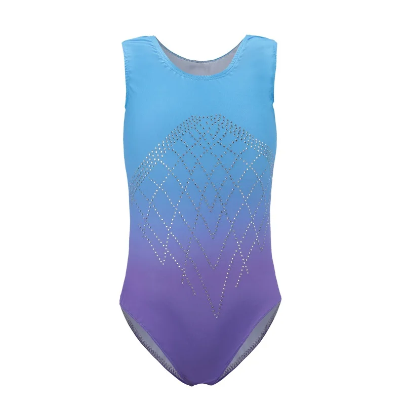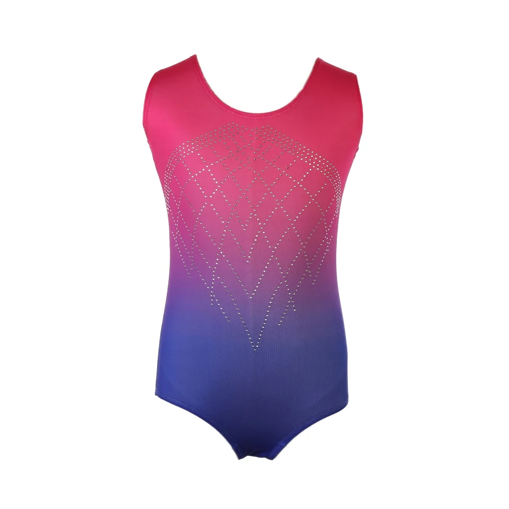 Балетный гимнастический костюм для девочек, одежда для тренировок без рукавов, с бриллиантами, комбинезон с градиентными цветами, танцевальная одежда