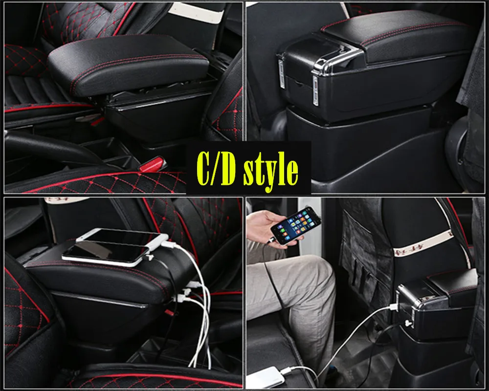 E Стиль: двухслойный выдвижной 9USB (передний 3USB + задний 6USB) подлокотник + основание (кабель передачи данных и зарядное устройство)