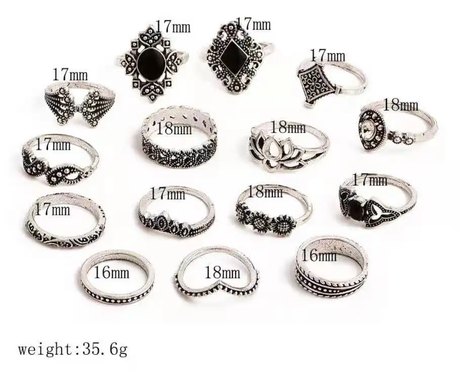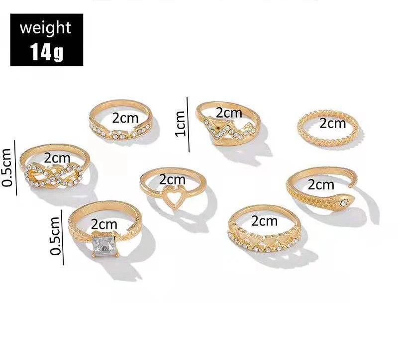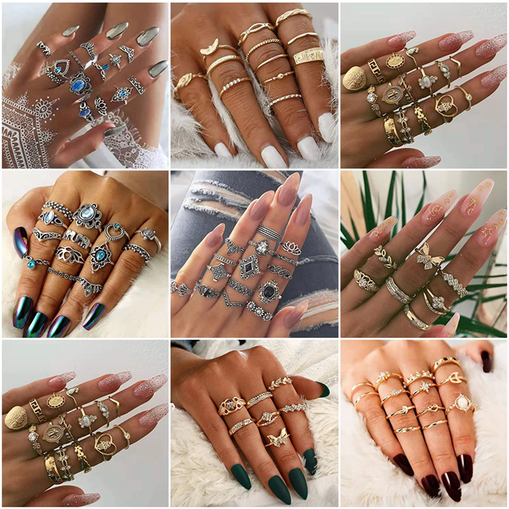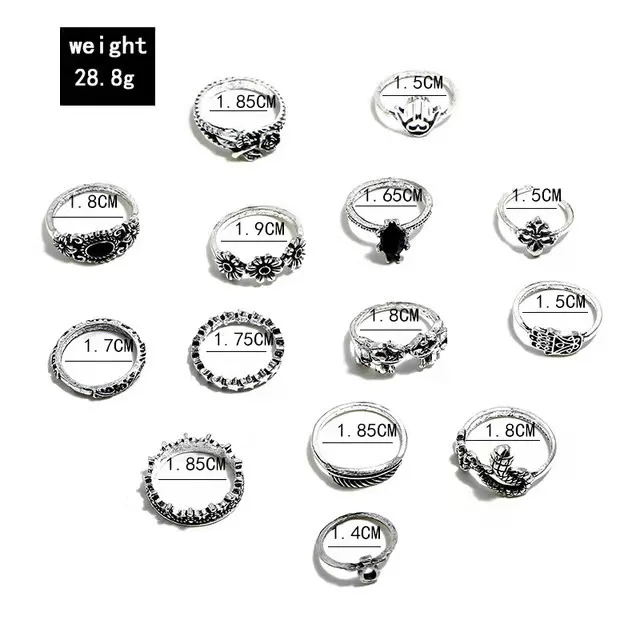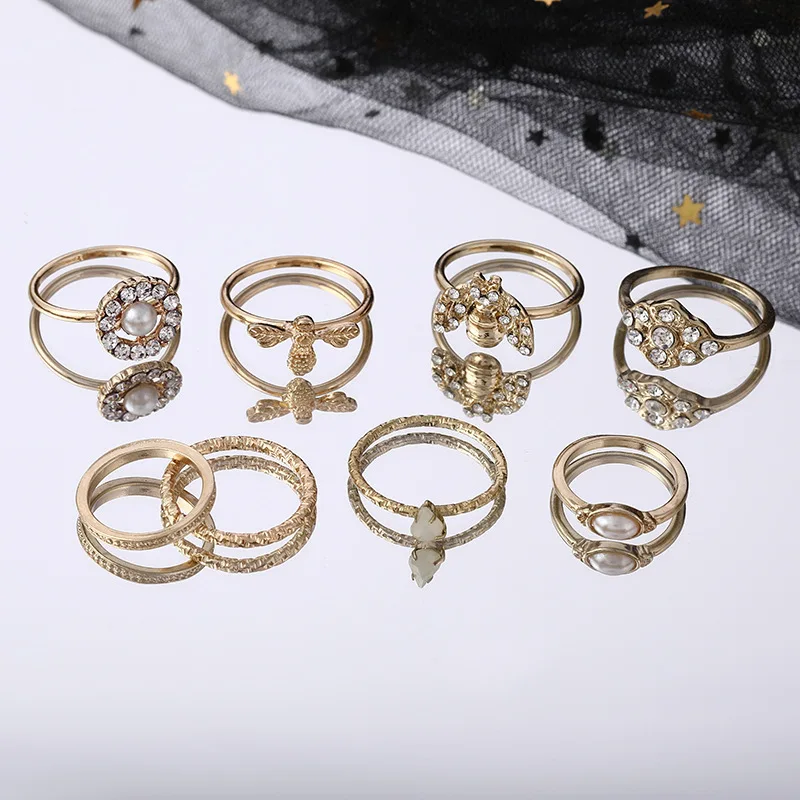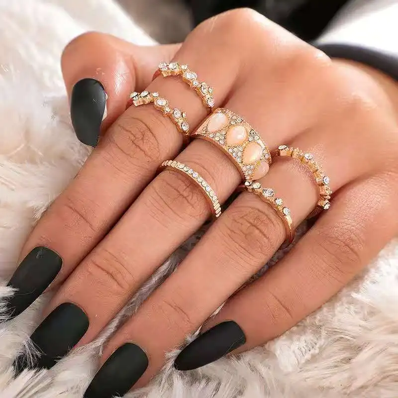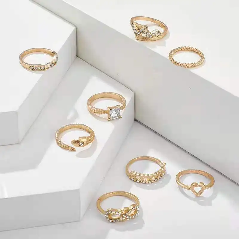 Набор женских колец из нержавеющей стали в европейском и американском стиле
