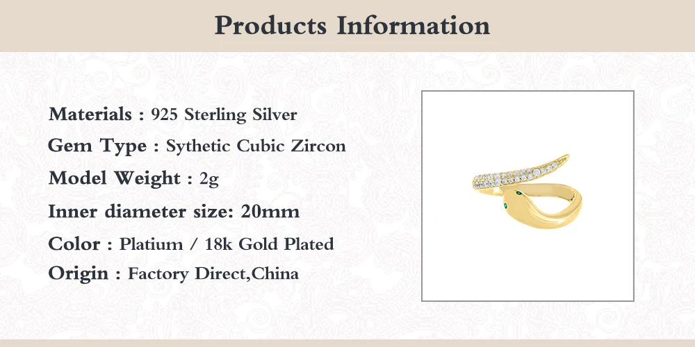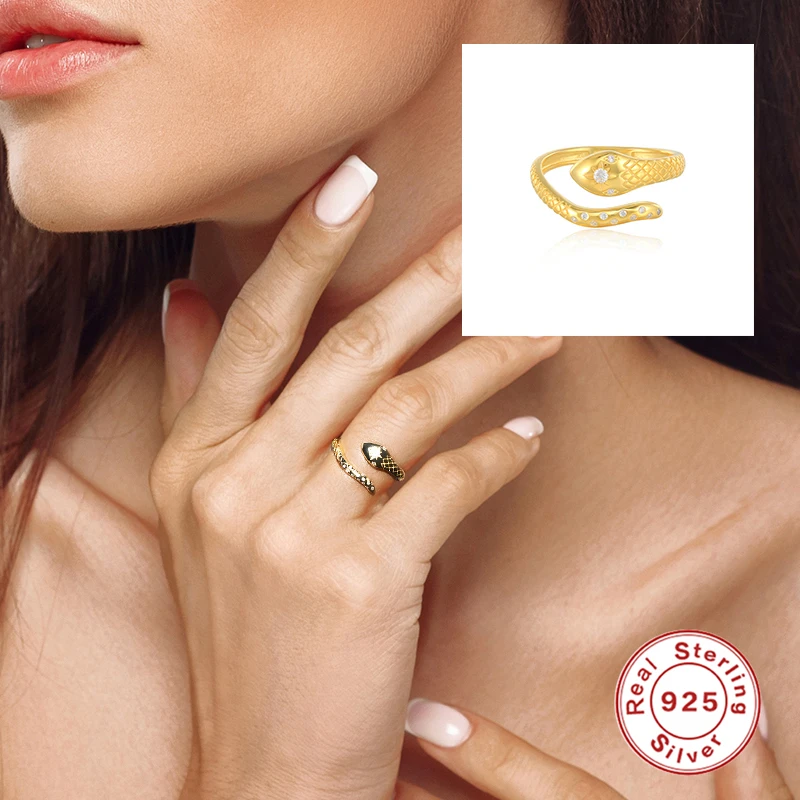 Женское кольцо-змея из серебра 925 пробы, в европейском и американском стиле