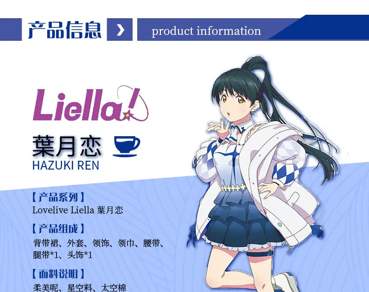 Материал: полиэстерИсточник: LoveLive Superstar LiellaКартер: Heanna Sumire Arashi Chisato Hazuki Ren Tang Keke Kuku ShibuyaВ комплекте: платье, пальто, воротник, пояс, головной убор