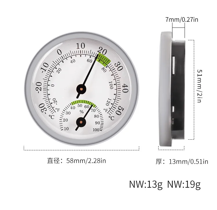 Название продукта: Термогигрометр диаметром 57 мм (белый, серебристый, зеленый, золотой, черный цвет)