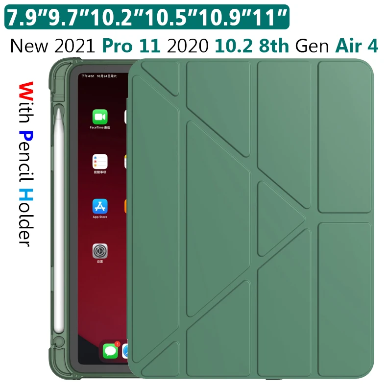 Чехол из ТПУ для iPad 10,2 2021 2020 чехол с держателем для карандашей Smart Cover Fo 2021 iPad m1 Pro 11 2021 Air 2 1 9,7 "2018 5th/6th Air 4