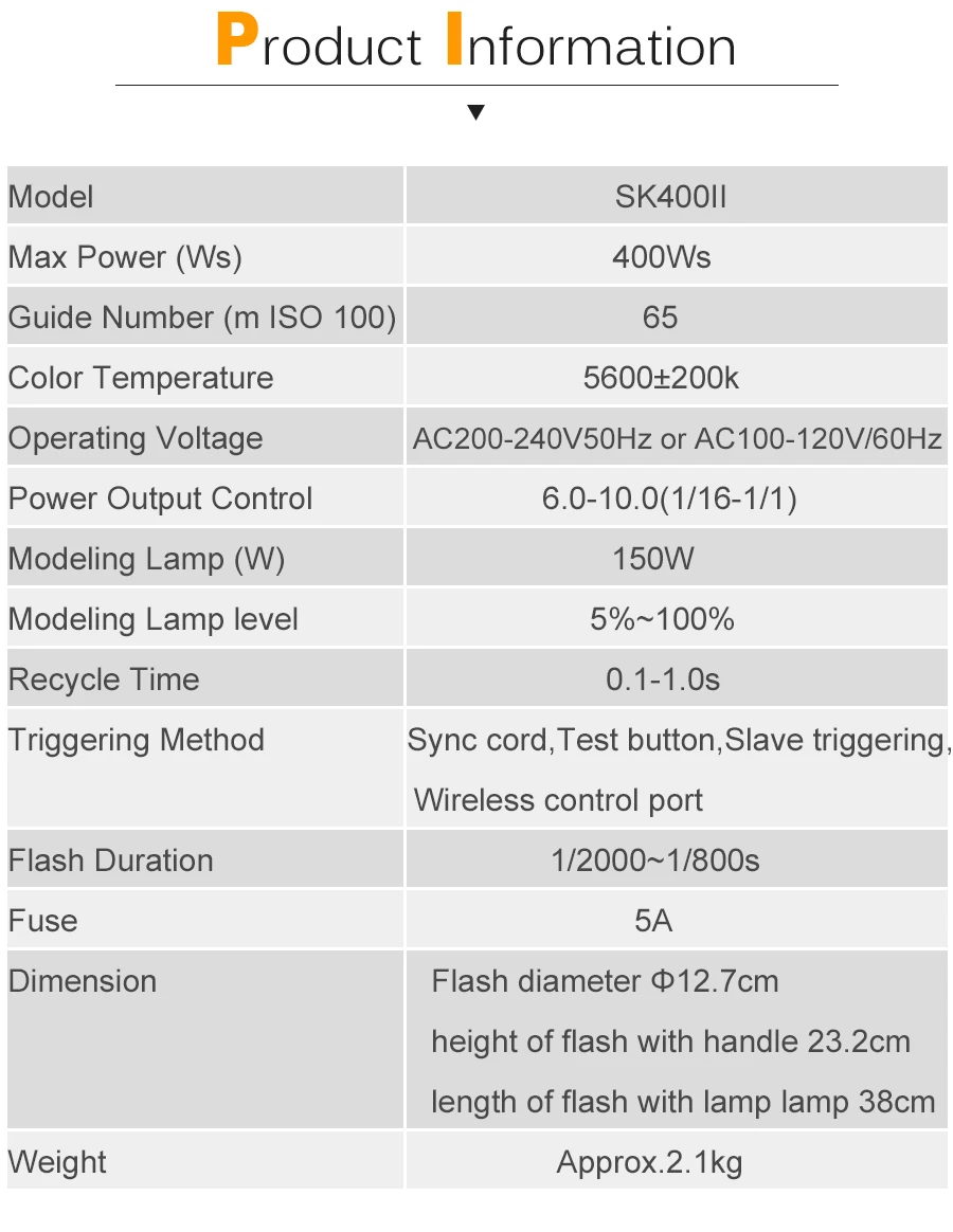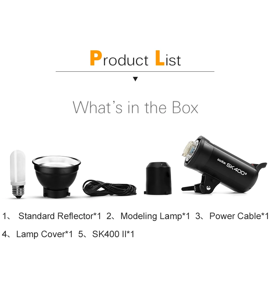 Благодаря встроенной беспроводной системе Godox 2,4G, серия SKII является экономически эффективным компактным стробоскопическим устройством для съёмки, портретной и образа жизни в электронной коммерции. В студийной съемке smalland medium он может работать как высокий светильник, фоновый светильник или светильник для волос.