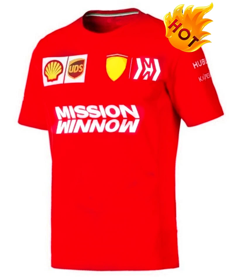 Новинка 2021, Мужская футболка с коротким рукавом, одежда, Красная футболка для экстремальных видов спорта на открытом воздухе, для гонок, летняя команда Формула 1 Ferrari, без принта
