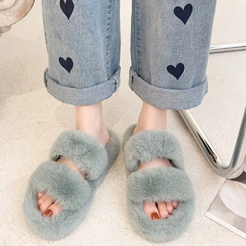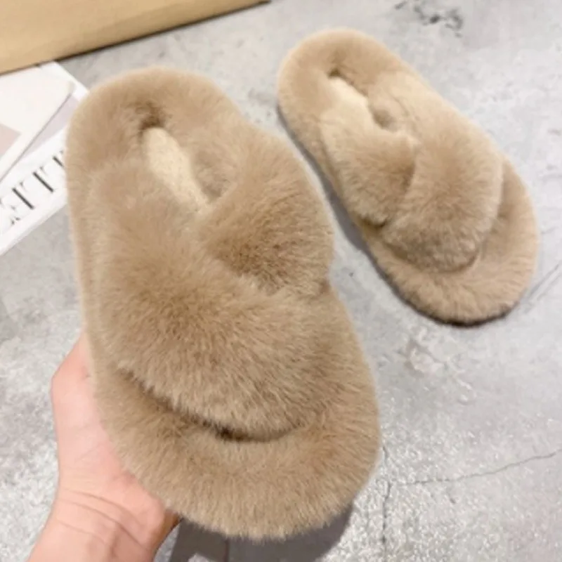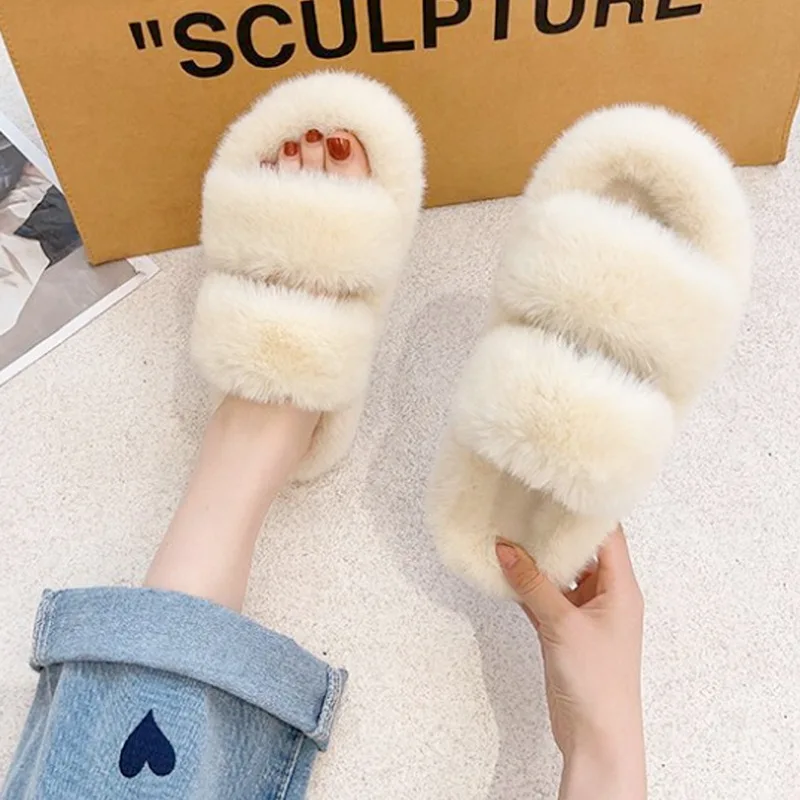 Женские меховые шлепанцы, мягкие меховые сандалии, плоская подошва, меховые шлепанцы, сланцы, для улицы и помещения