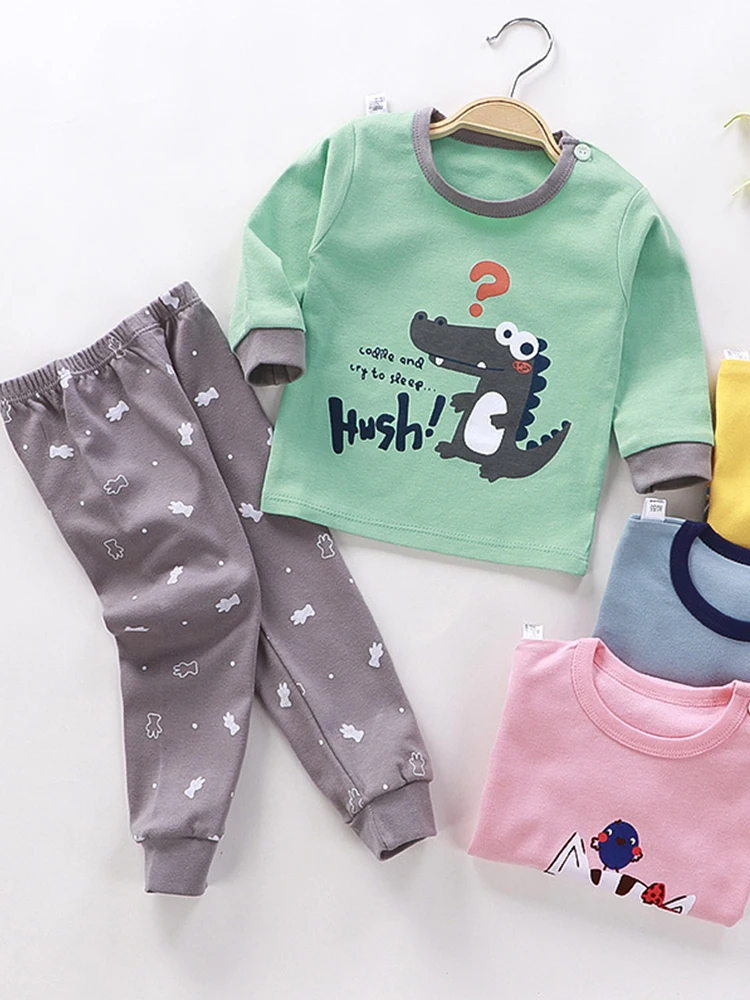 Пижамный комплект для девочек, комплект нижнего белья, одежда для маленьких мальчиков, длинные брюки с принтом на осень и зиму, Корейская Домашняя одежда, детская одежда
